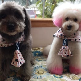 さくらんぼ柄でお友達のプードルちゃんとお揃いに!首がスッキリ ...