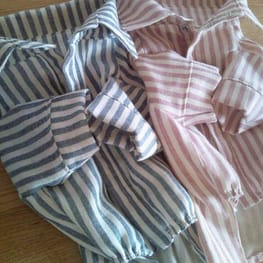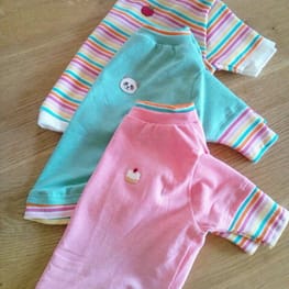 天竺ボーダーに袖を赤のニットで作りました!オリジナルのデニム ...