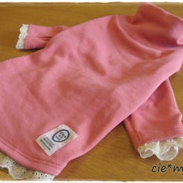 Mサイズの首リブを8cmに伸ばしてタートルTに、袖口と裾にレ ...