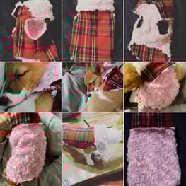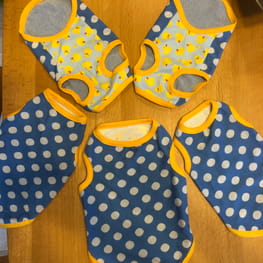 リバーシブル生地の表面と裏側を組み合わせて作りました。