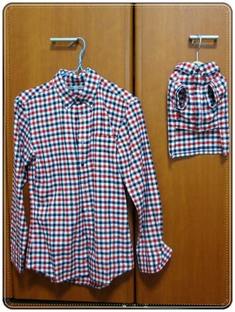 メンズシャツをリメイクして作りました。私とペアで着ます( *´艸`)