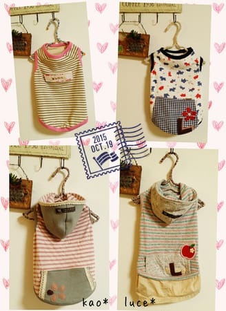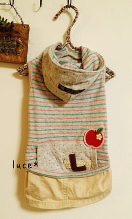 スカート部分は娘のジャンパースカートをリメイク ワンコ教室に行く用に名前のLのアップリケを付けました。
