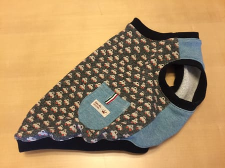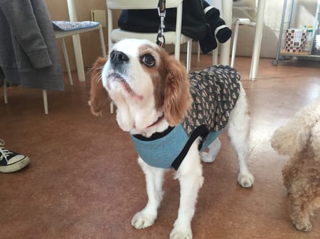 キャバリアの男の子用に、トレーナー生地でちょっと大きめサイズに出来上がり。