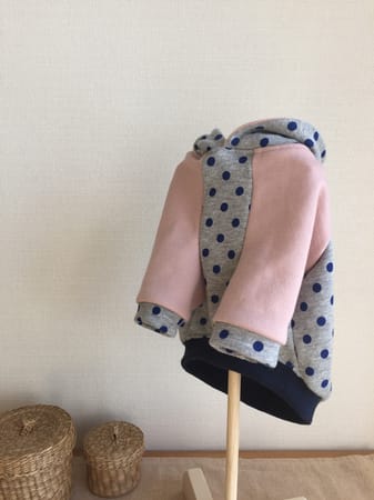 新しくなった型紙でパーカーを作ってみました。全体的にバランスが良くて、フードの形も可愛いです。