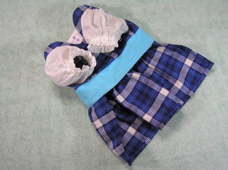 着なくなったサマードレスをリメイクしてみました。 前に少し開きを作りかぶりタイプにしてあります。