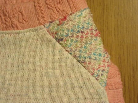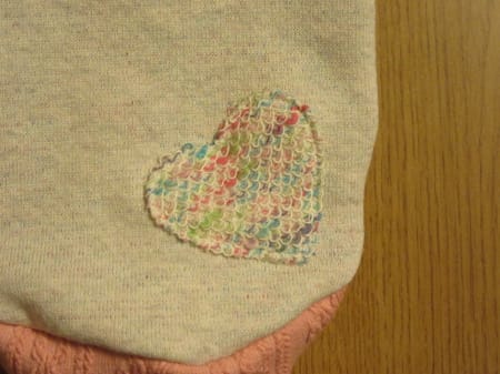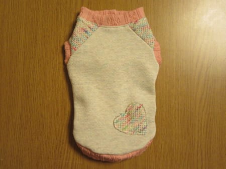 お袖の部分とハートのアップリケは、生地の裏側を利用しました。