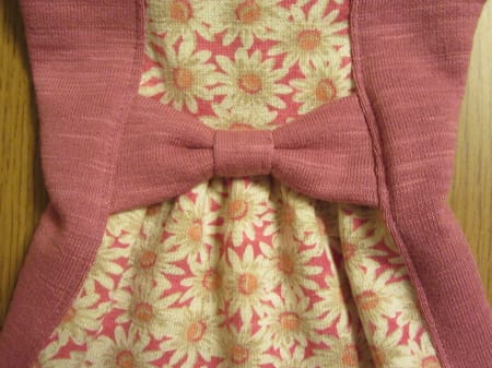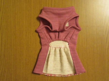 背中側の生地を3枚はぎにして、腰の部分にはリボンを挟みました。