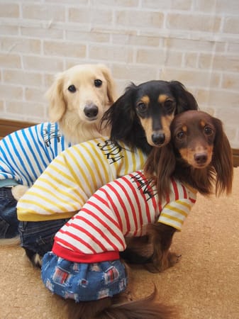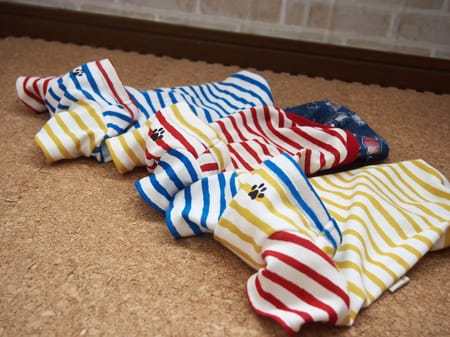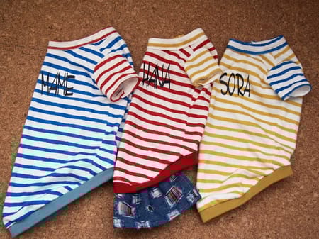 3色のボーダー生地でカラフルしましまTシャツ作りました♪