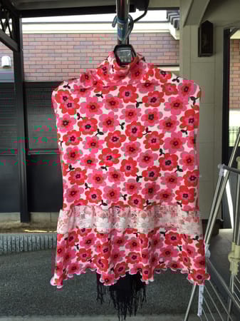 裾と袖口をメローしたフリルにしてワンピース風に 女子度UP!?