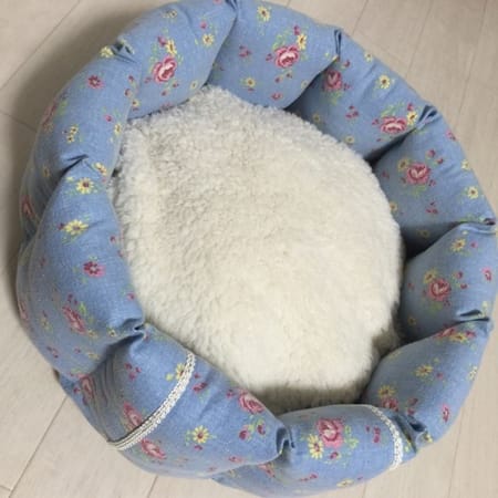 『はじめてでもかんたん!手作りドッグウエア&アクセサリー』の中からベッドを作りました。初めてベッドを作りましたがわかりやすいレシピと形になるのが楽しくて完成までノンストップでした。