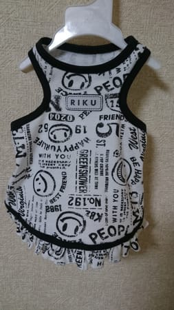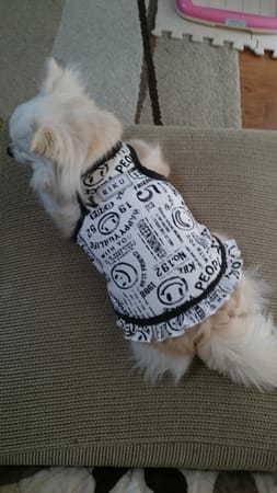 かわいい生地を購入して、薄く縫いやすい生地でこれからの季節にちょうどいいかも・・・デカチワワちゃんなのでレーサーバックになってない(ーー;)裾フリルは悩んだけど、やっぱりいらなかったかも。。。