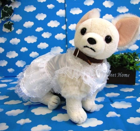 結婚式の前撮り用に、チワワ3姉妹用ドレスです。