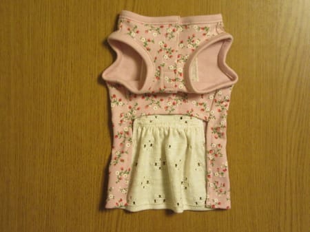 背中側の見頃を三枚はぎにして中央の生地をレース風のニットにしました。