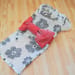 赤いリボンが映えるよう白黒モノトーン生地で作りました♪