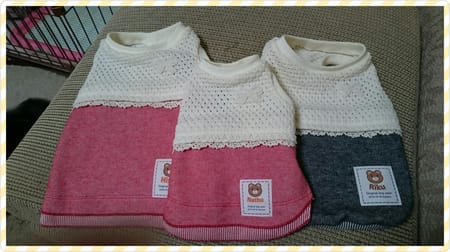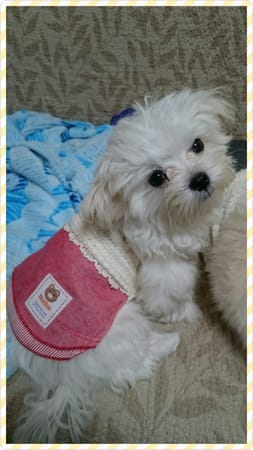 今日はおチビさんのドッグランデビュー! おそろ服が無いので製作。 胸にリボンのチャームを付け、記念日なのでネームタグに今日の日付を入れました(^^)