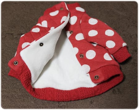 フードなし、袖付で作ってみました。 裏地はメルトンフリースであったかです^^
