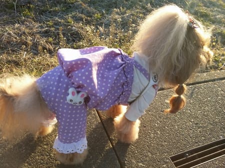デザインは違いますが同じ生地を使用する事でお揃いのようにしました。