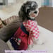 着物は、手ぬぐいの矢絣とちりめんの桜柄のリバーシブルです。