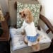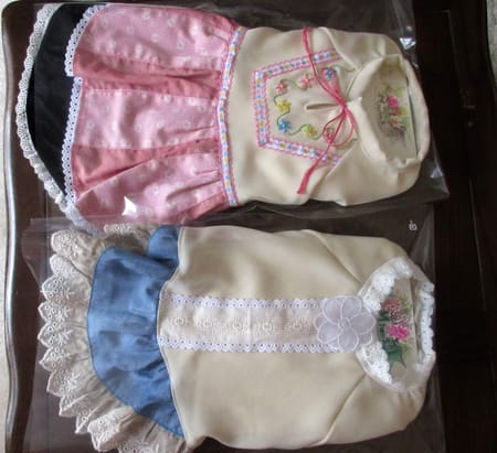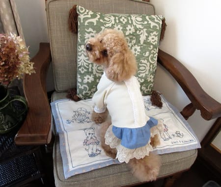 我が家の4歳トイプードル、リンゴ(男の子)にモデルさんになってもらいました。ゆとりも丁度良くてホッとしました。立体裁断型紙は助かります。