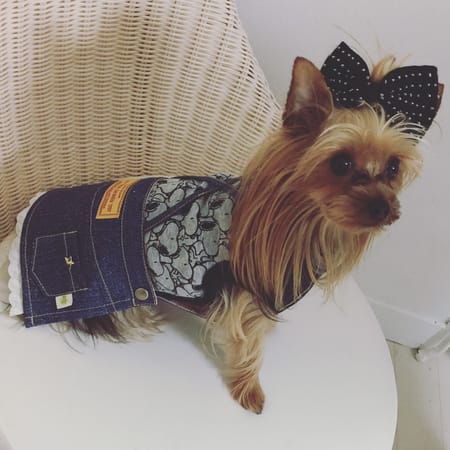 タグやスタッズで飾りミシン糸も#30を使いました♡