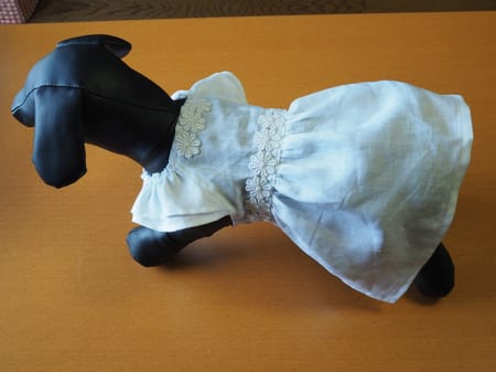 首元とウエストには花のレースを付けて、清楚でラブリーに。