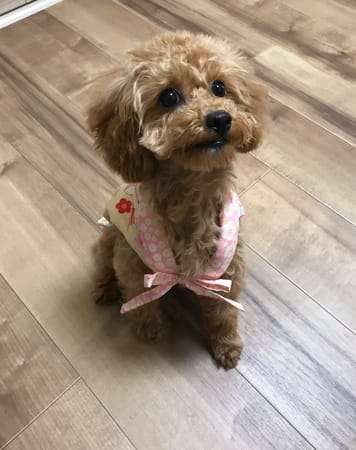 生後6ヵ月のトイプーに、初節句でちゃんちゃんこを作りました。Sサイズ型紙でピッタシです。