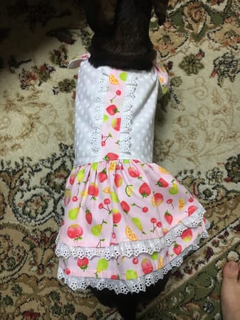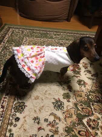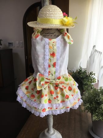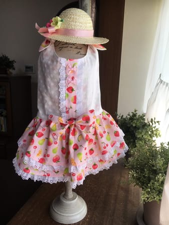 お帽子に合わせて、サンドレス風にしてみました。 肩のリボンで首回りが調節できます。