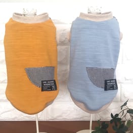 見頃を夏はこのままで、冬は重ね着が出来るようにメッシュ生地にして、パンツは裾を取り返すとヒッコリーが見えるようにリバーシブルデニムニット生地で仕立てました!意外にも男の子だけでなく女の子にも似合いますね♪
