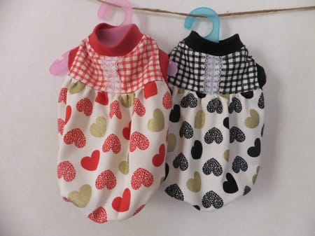 バルーンワンピは良く作ります。 今回、可愛いハートの生地が手に入りましたので2色作ってみました(*^_^*)