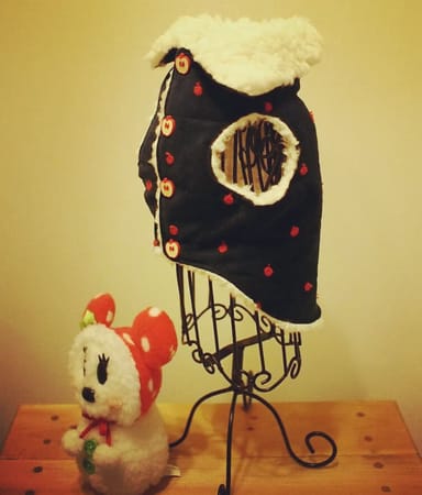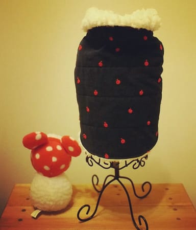 裏地をプードルファーにして等間隔のステッチを入れたら、中綿を入れなくてもダウンベスト風に仕上がりました♪