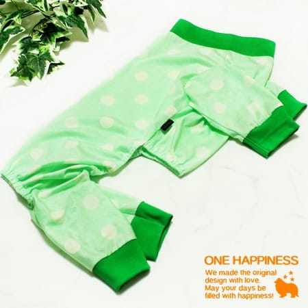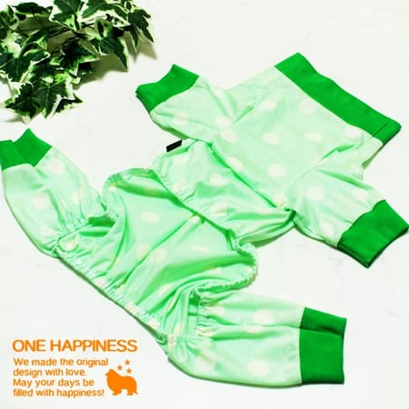 ロンパース 抜け毛対策 ライトグリーン&ホワイトドット♪