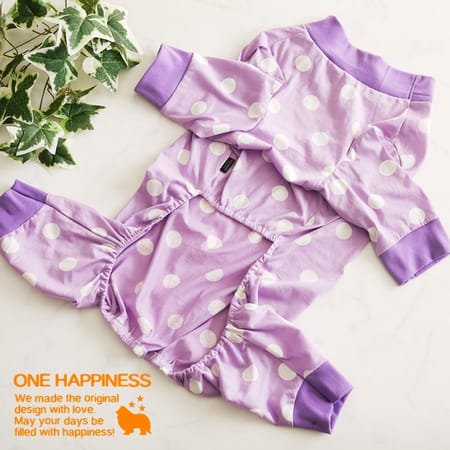 ロンパース 抜け毛対策 ライトパープル&ホワイトドット♪