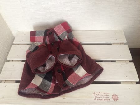 リメイクコンテストに応募したお洋服です。 娘の思い出のシャツがわんこ服としてよみがえりました♬