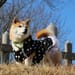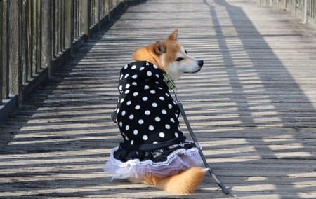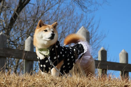 フード付きワンピースです。フリースのトップにふりふりのチュ―ルのスカートを付けています。