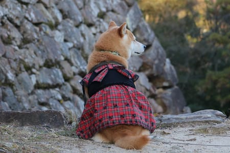 今回の服は黒の生地と赤のギンガムチェックの組合せです。 テーマは「魔女の宅急便」?