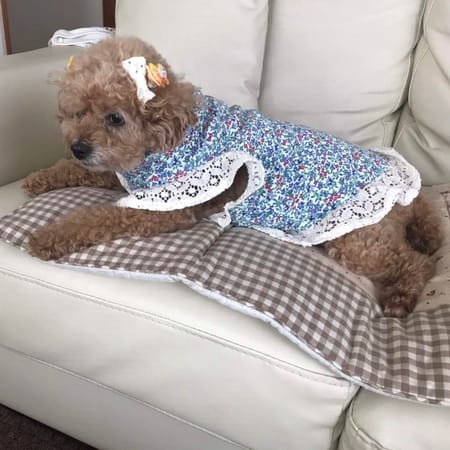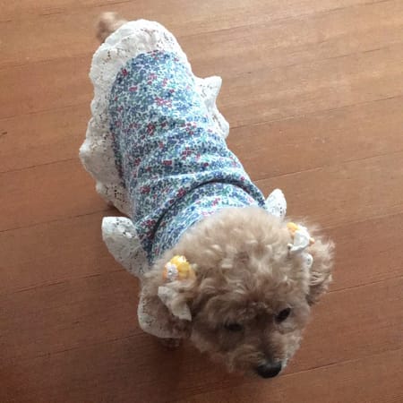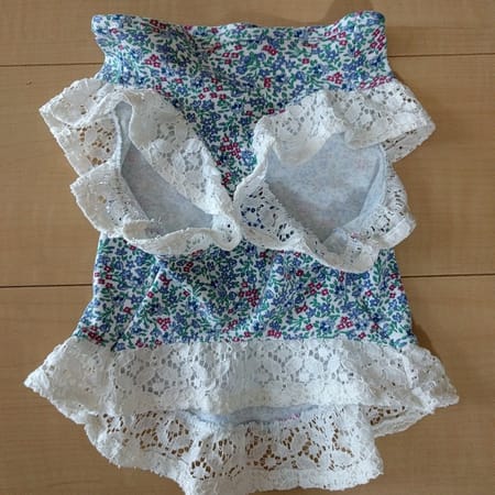 作者の古着をリメイクしました。レースの分少し長めになってしまいましたが、本人は気にしていないようです。