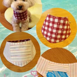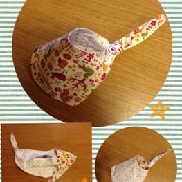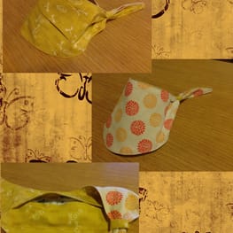 後ろで結ぶのではなく、共布のわっかで留める仕様にしました。