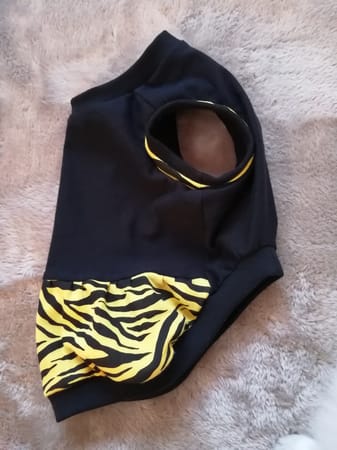 袖リブに虎柄を挟んでアクセント。