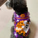 スカーフの柄を利用してハロウィン衣装! 襟はサテン、袖口はレースをつけました。
