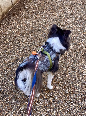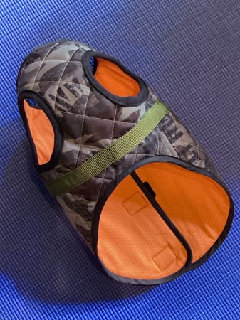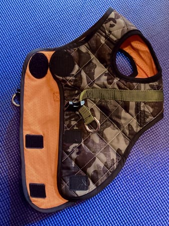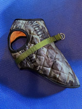バックオープンベスト(M)の型紙(を利用して防寒用ハーネスコートを作りました。