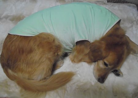伸び縮みするフリース生地で作ってみました。5Lサイズの型紙をもとに、胴回りと襟ぐりを2cmずつ大きくしています。出来栄えはなかなか良いのですが、ポリエステル(-)と毛(+)で静電気がおきないか心配です。しばらく様子をみます。