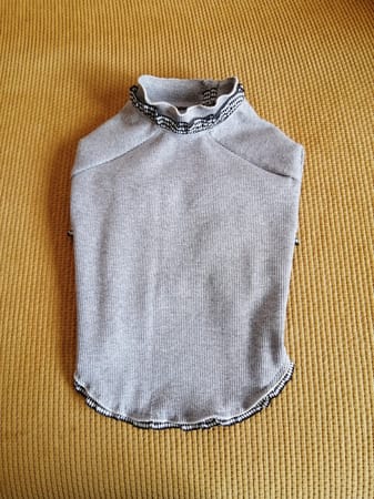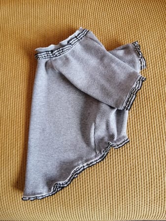 ラグラン袖の練習のために作ろうと思いましたが、あまりにもシンプルなのでストレッチリボンを付けました。