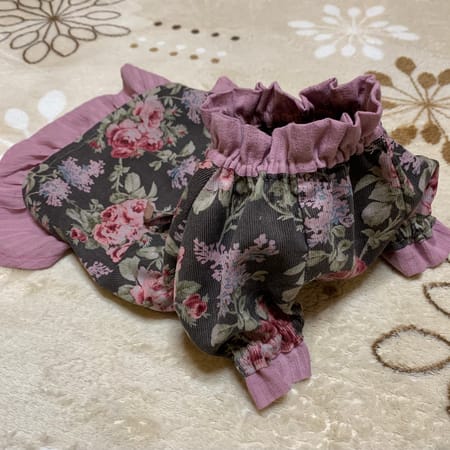 お気に入りの生地で、大人シンプル可愛くを目指して作りました。型紙ではスソに付けるゴムを脇の下に入れ、ハイウエストにしてスカート部分をふっくらする様に工夫しました。