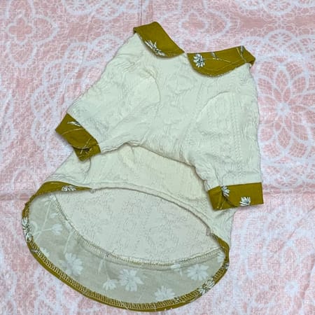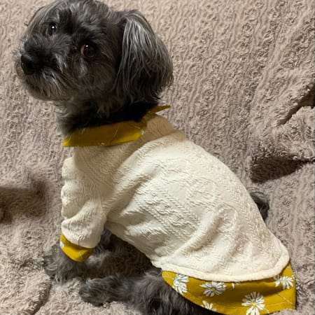 バルーンブラウスの型紙をアレンジして、おソロでワンピースと同じ襟をつけたシャツ風を作りました。