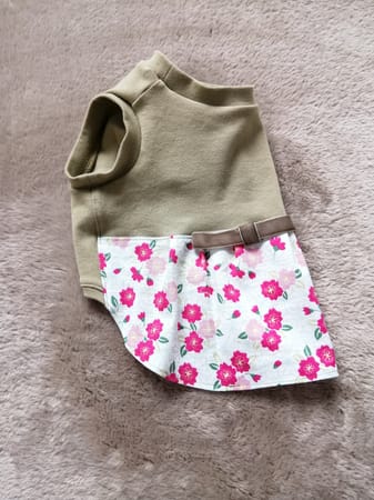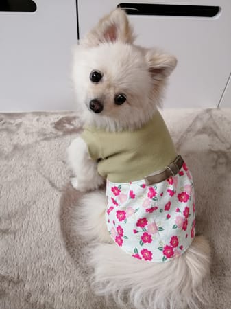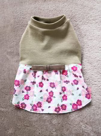 お花見の季節に向けて、桜の和柄の生地でワンピースを作りました。ベルベットのリボンを付けてお嬢様風に!