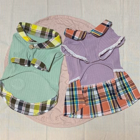 流行り?のくすみカラーで、ショールカラートップスの型紙をアレンジして作りました。くすみ紫にオレンジベースのチェックを合わせたのですが、どうなんでしょう?かわいいつもりで合わせたのですが、色の組み合わせ合ってたかな⁉︎