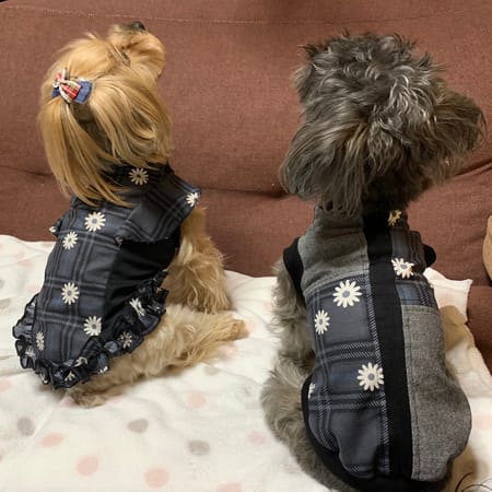 ラッフルスリーブトップスと無料のタンクトップの型紙で、同じ生地を使ってお揃いを作りました。