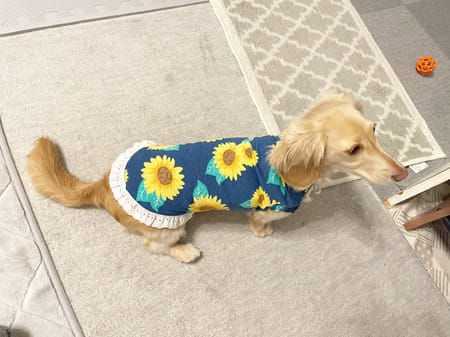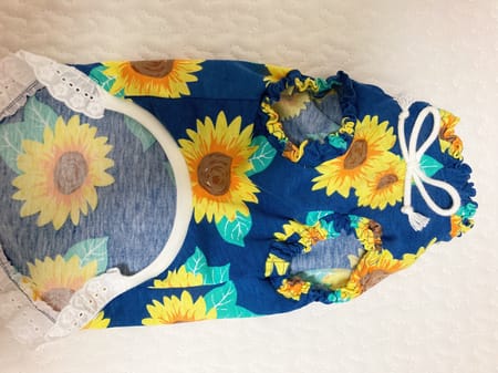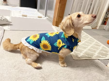 こちらも子ども服をリメイク。首と袖にゴムでギャザーがついていたので✁︎ハサミでカットして リメイク