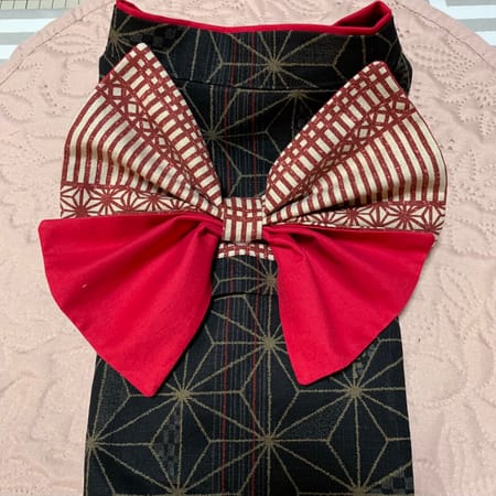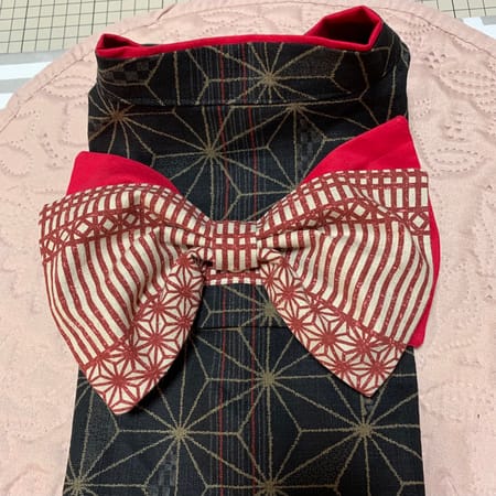 粋な浴衣をテーマに作りました。その日の気分に合わせてリボンの形を変えられるように工夫しました。