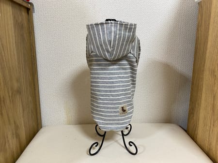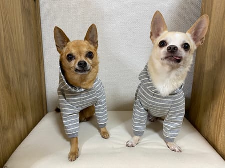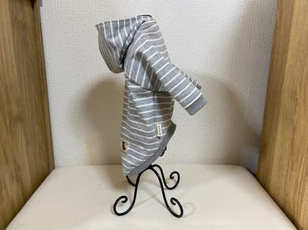 しっかりとしたニット生地で長袖パーカーを作りました。お揃いなんですが、体格が違うので若干丈の長さを変えてます。